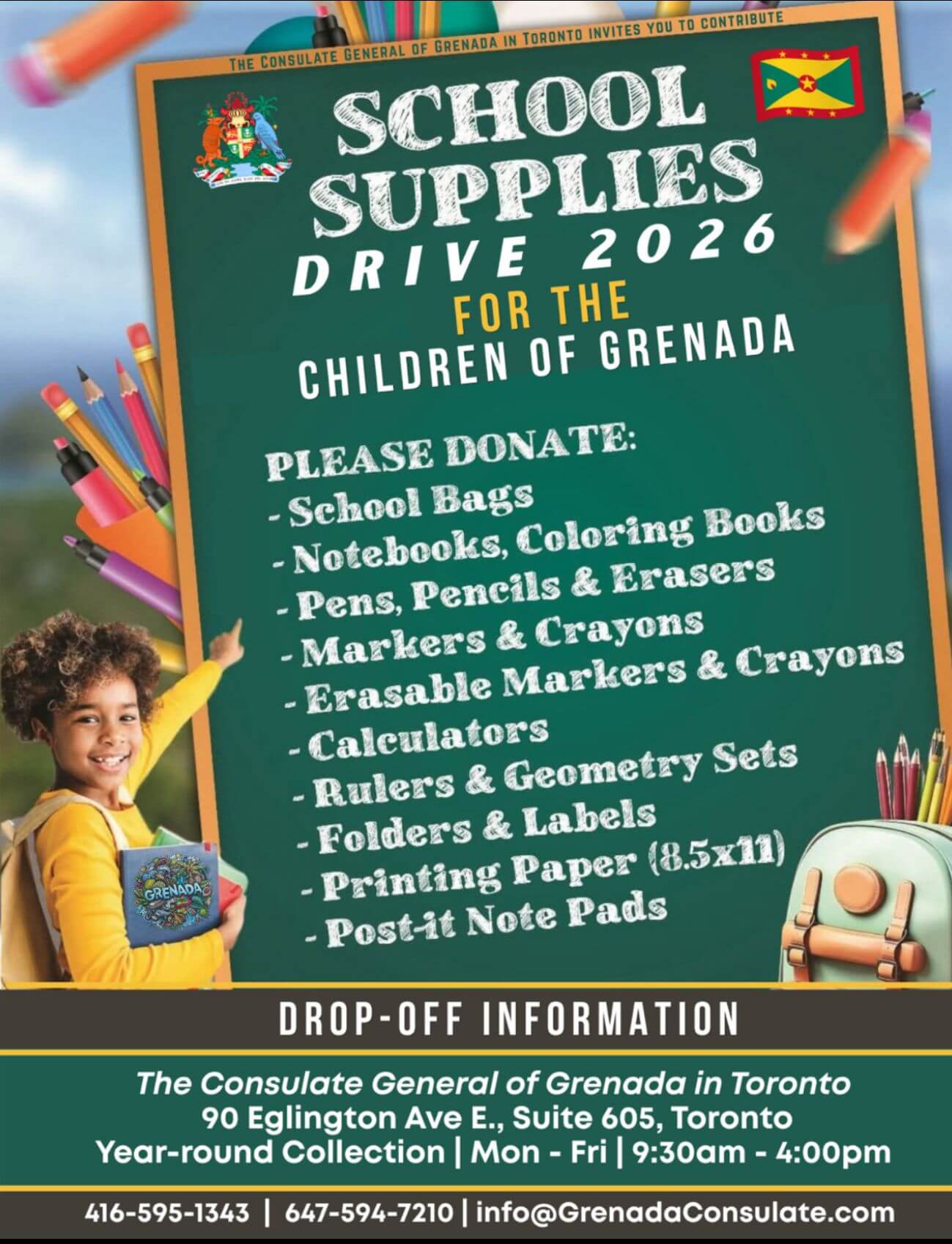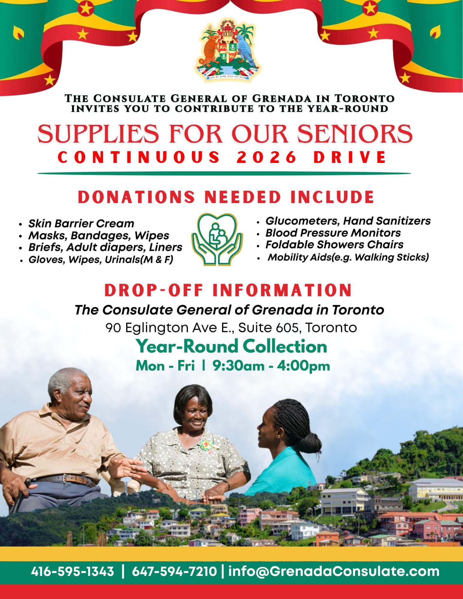 All information received by the Consulate will be kept confidential. For more information call the Grenada Consulate at (416) 595-1343 or e-mail info@grenadaconsulate.com.